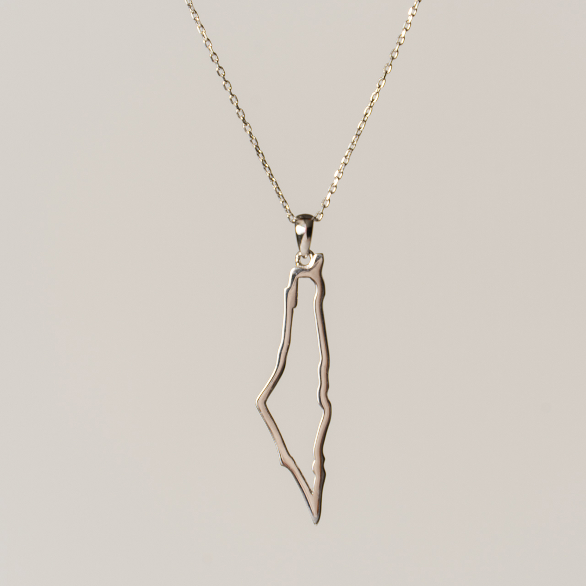 Colgante con el contorno del mapa de Palestina en plata.
