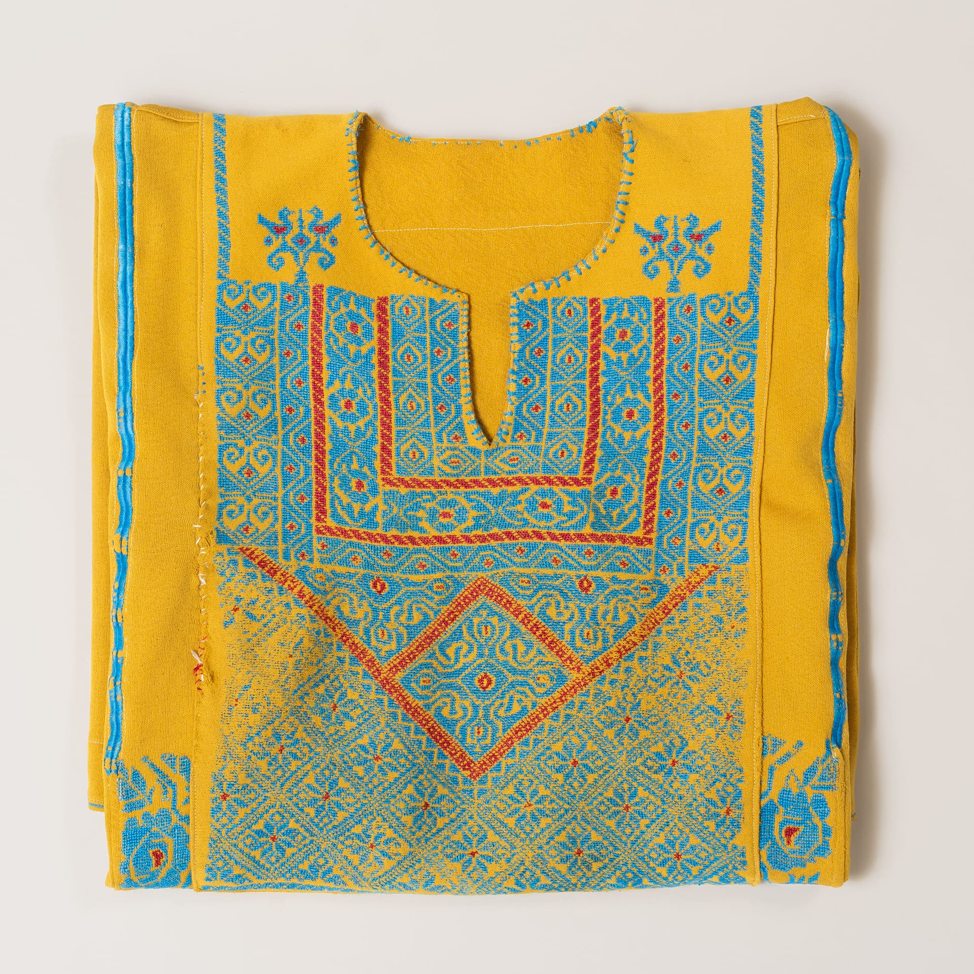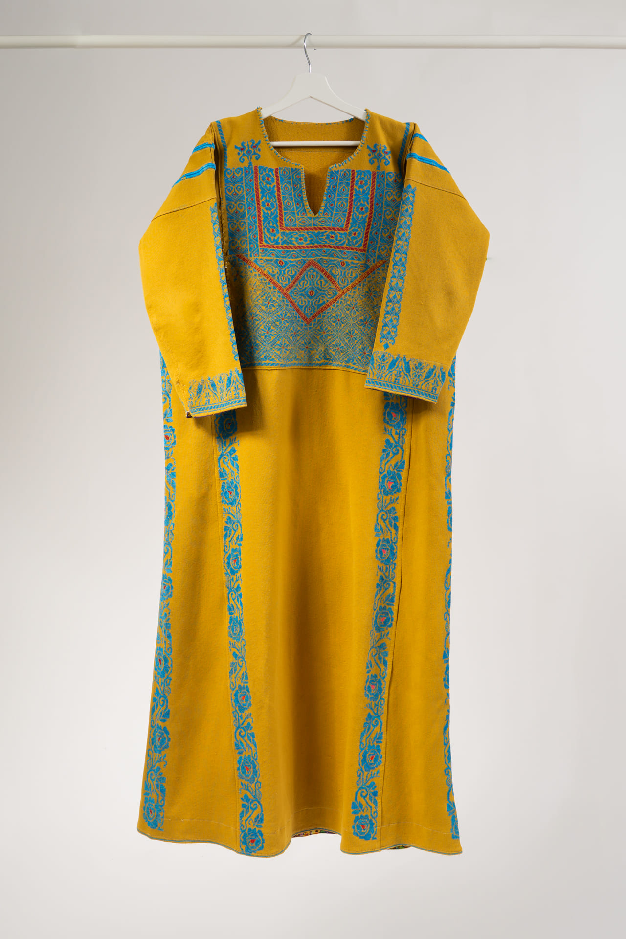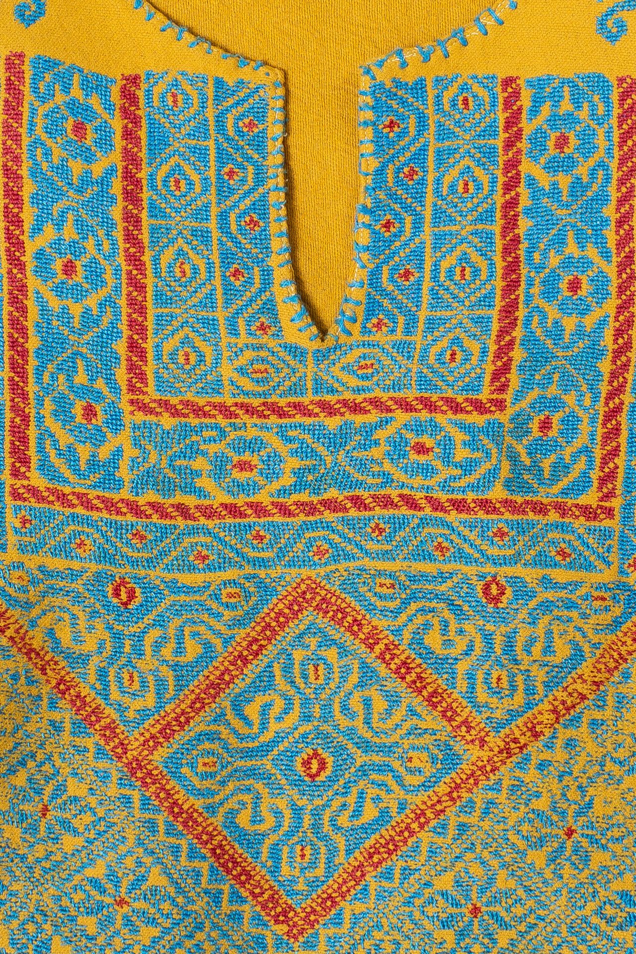 Cada thobe es una pieza única y auténtica del vestuario tradicional palestino, bordada a mano con símbolos que representan la identidad y la herencia de Palestina: las naranjas de Jaffa, cipreses, aves, rosas o antiguas rutas de comerciantes.