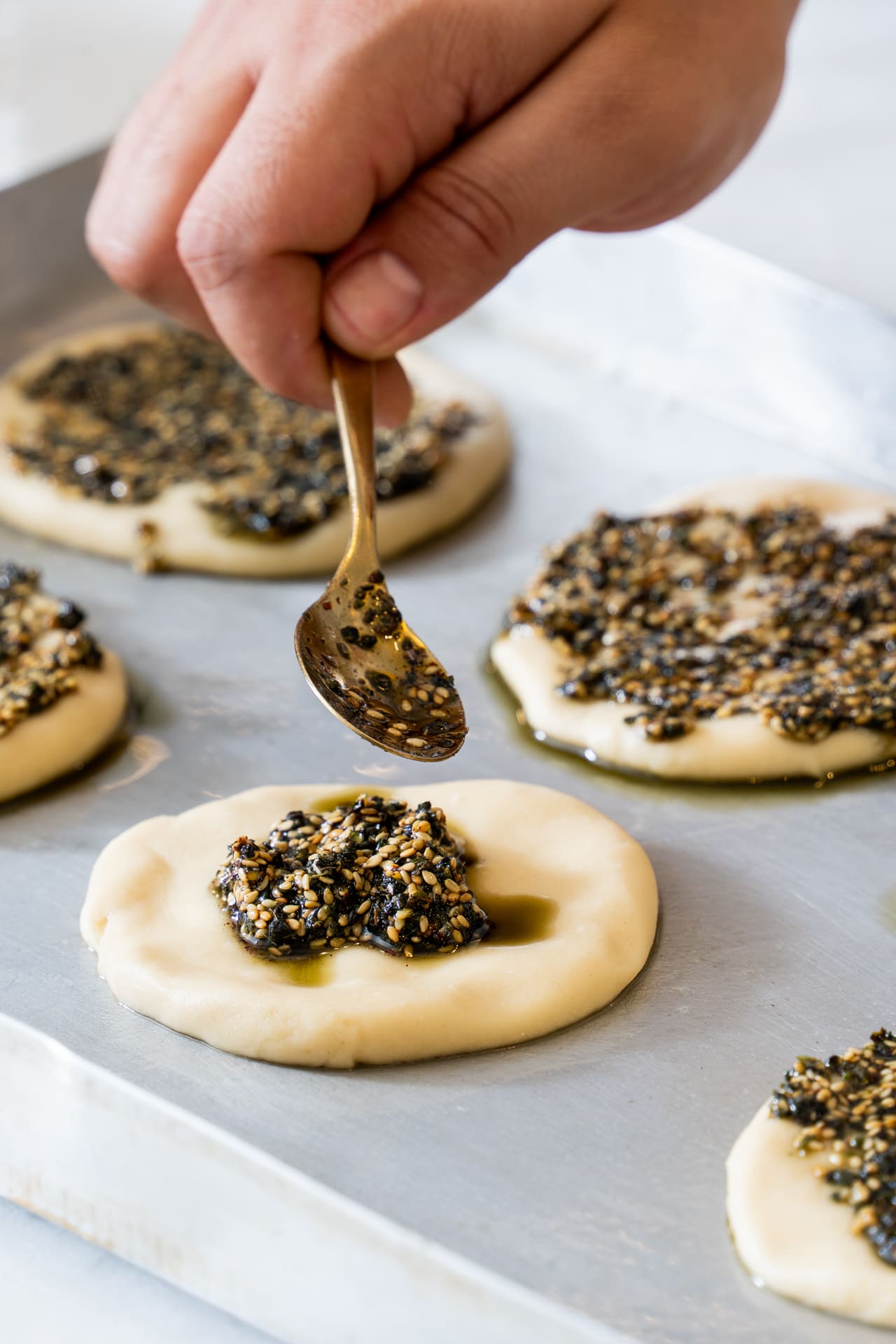 Pan, aceite y Za’atar a veces sobre queso fresco, otras sobre una pizza margarita.